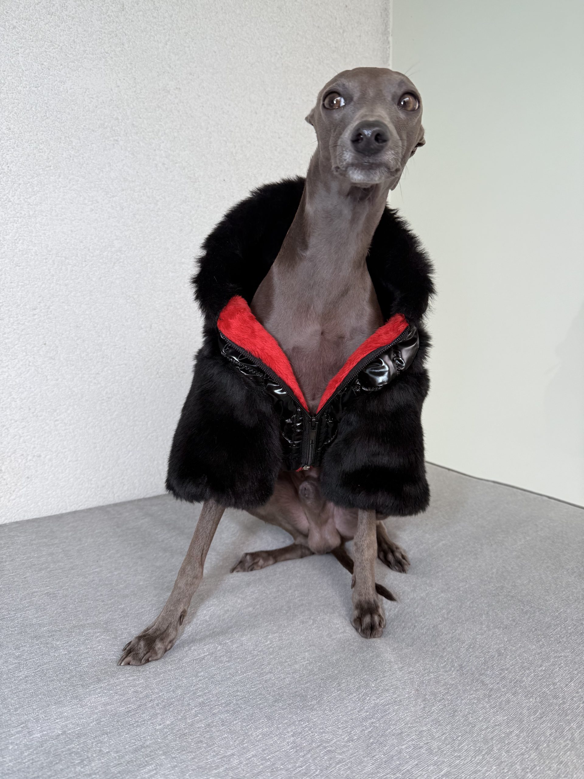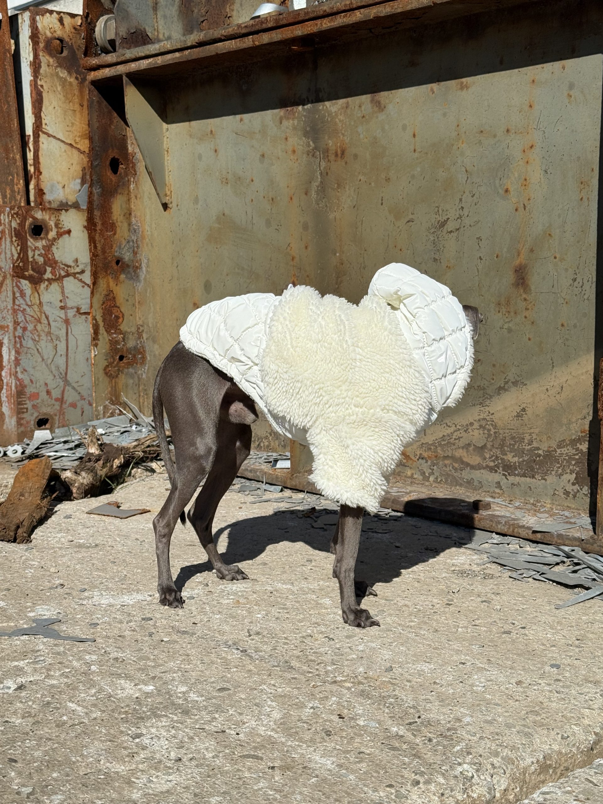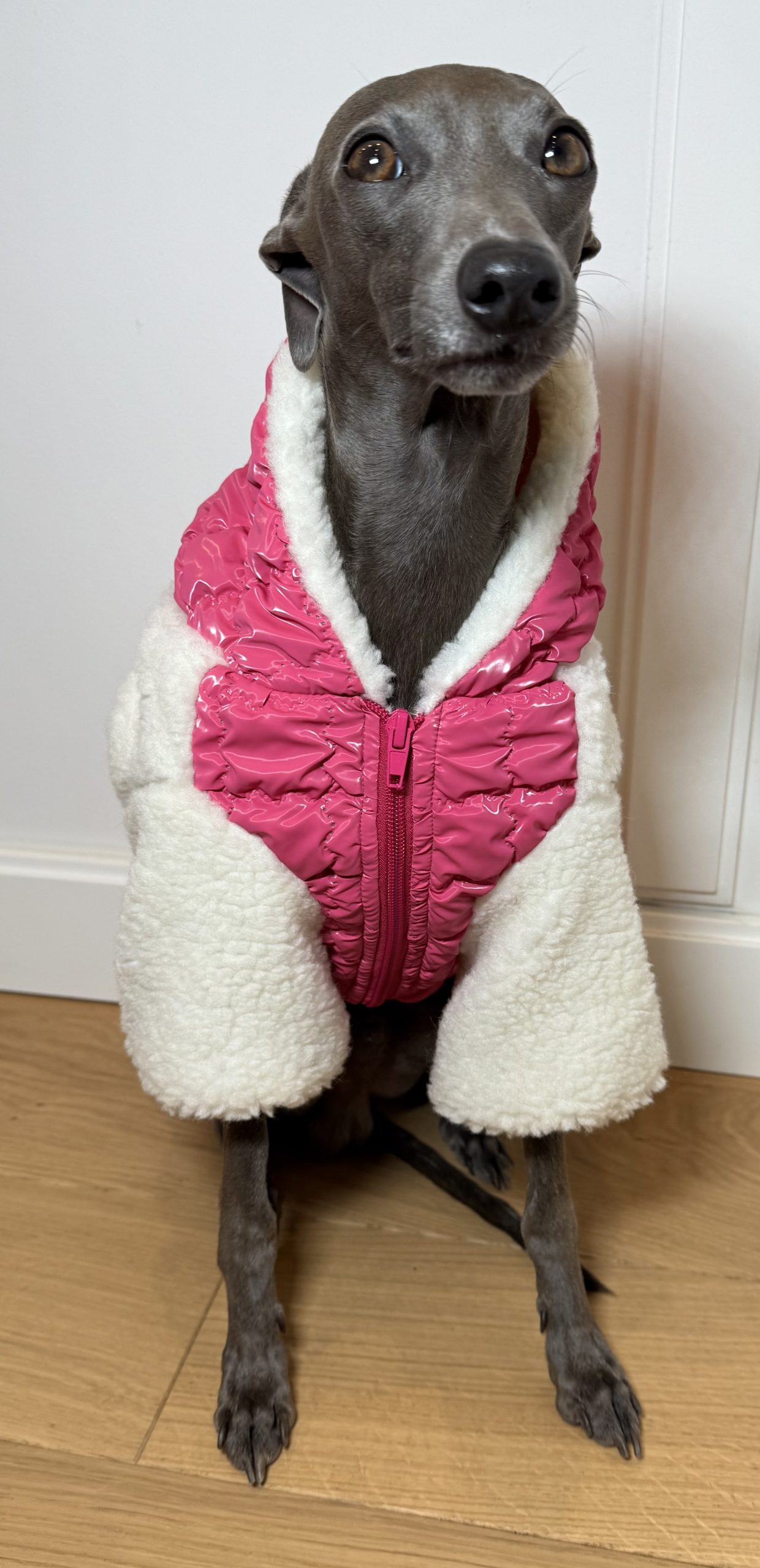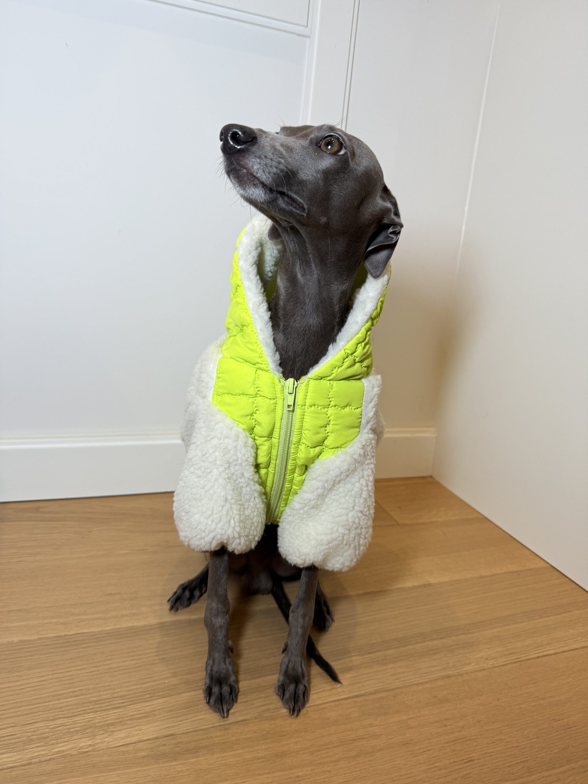 Praktyczne rozwiązania, takie jak otwór na karku do przypięcia smyczy, pozwalają na wygodne spacerowanie bez dodatkowych ograniczeń. Kurtka świetnie sprawdzi się zarówno jako samodzielna warstwa, jak i w połączeniu z kombinezonem dresowym, tworząc stylowy i funkcjonalny zestaw.