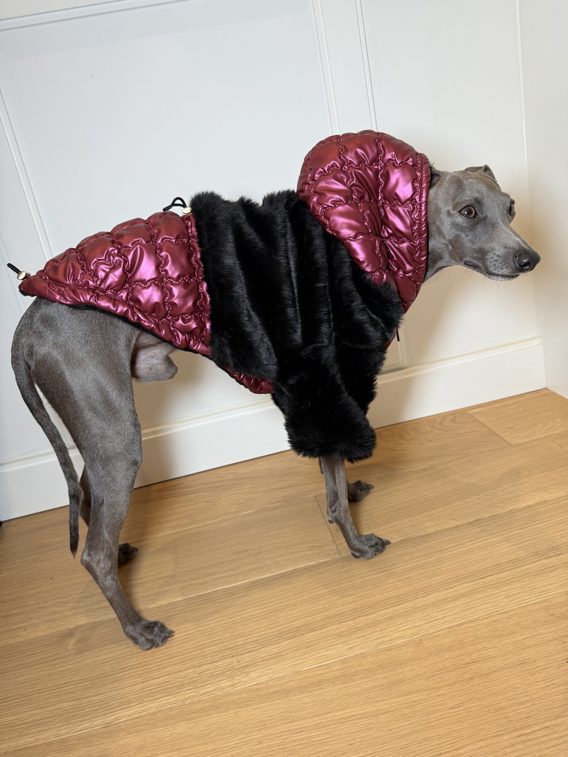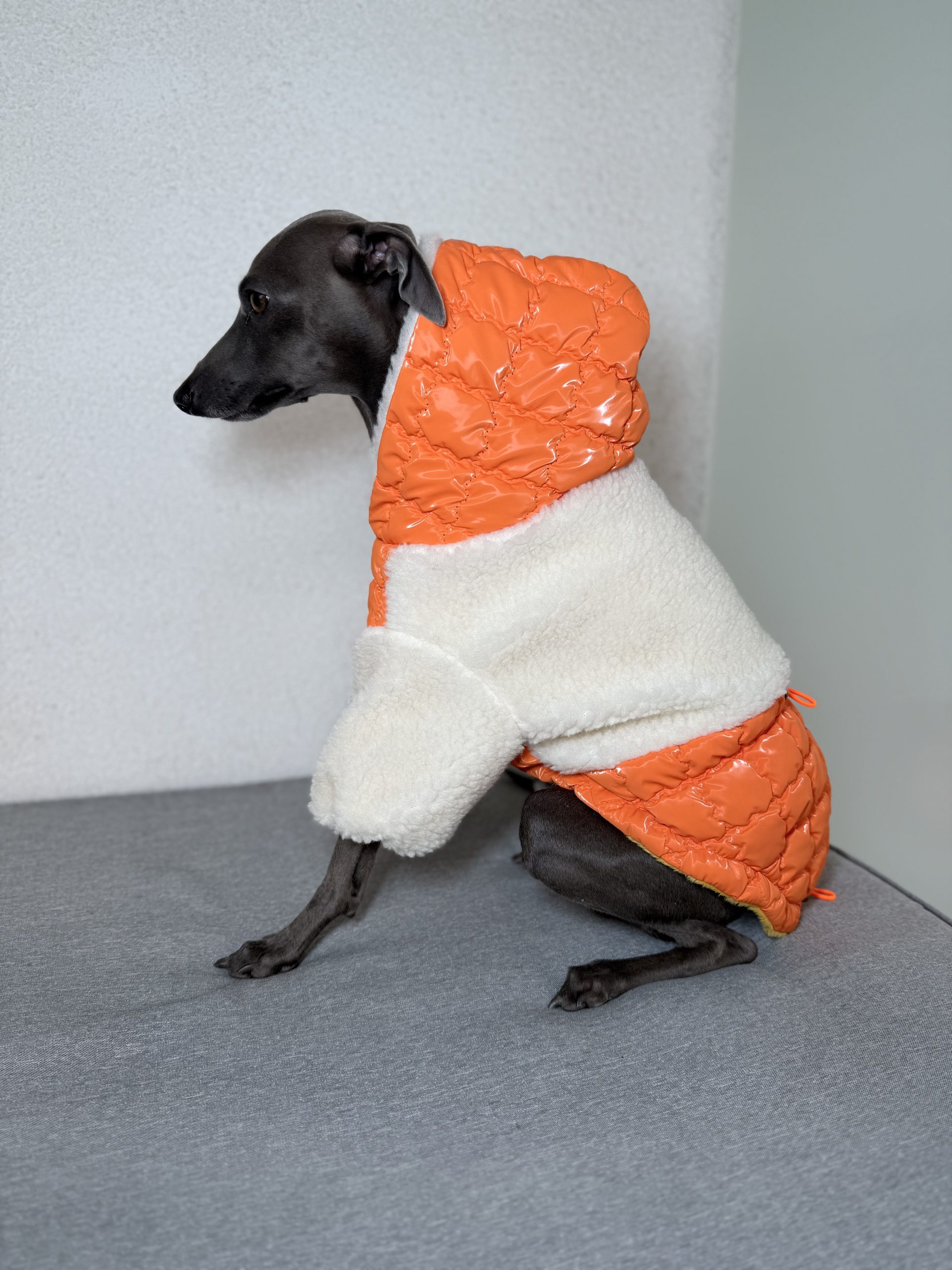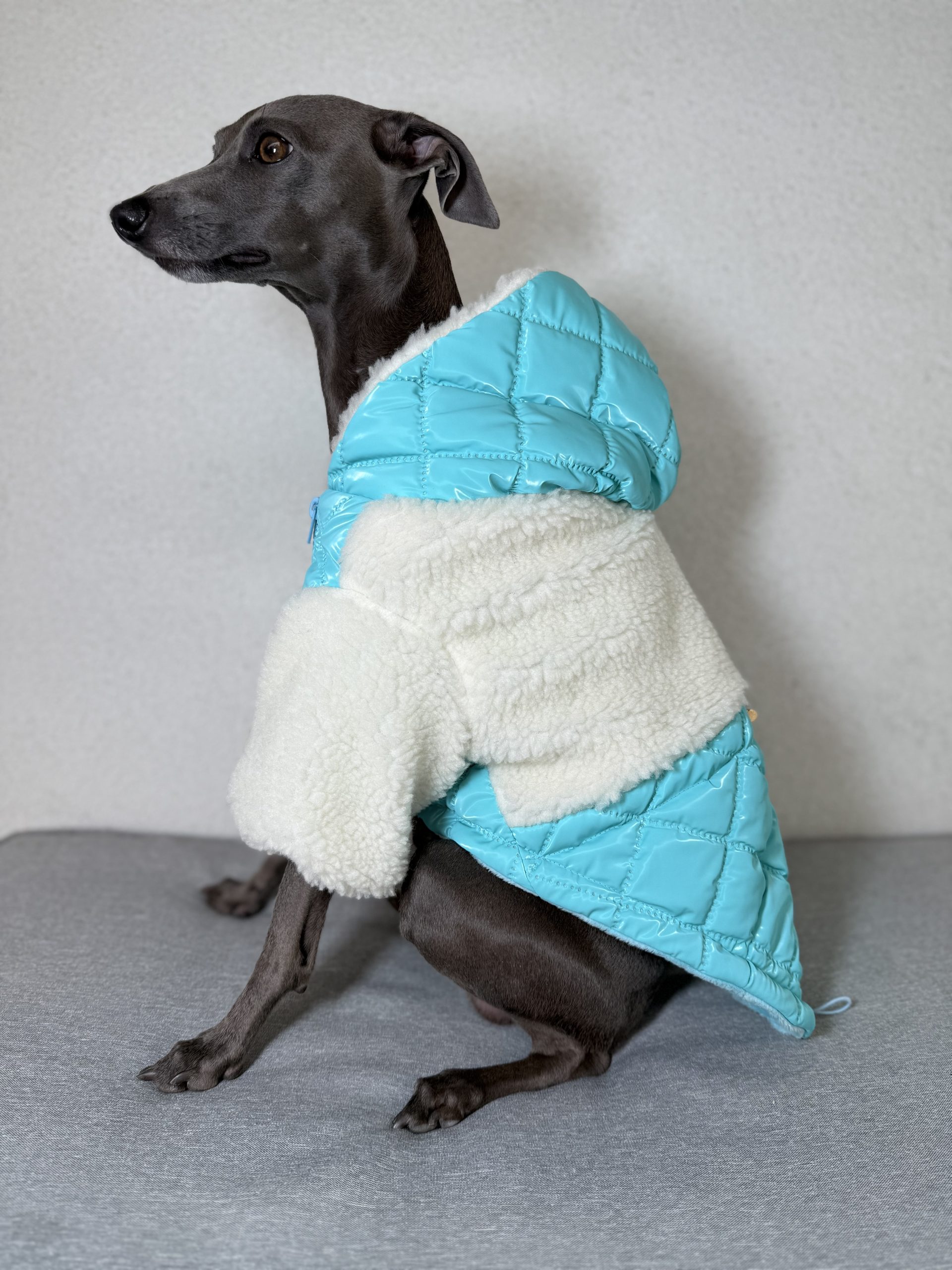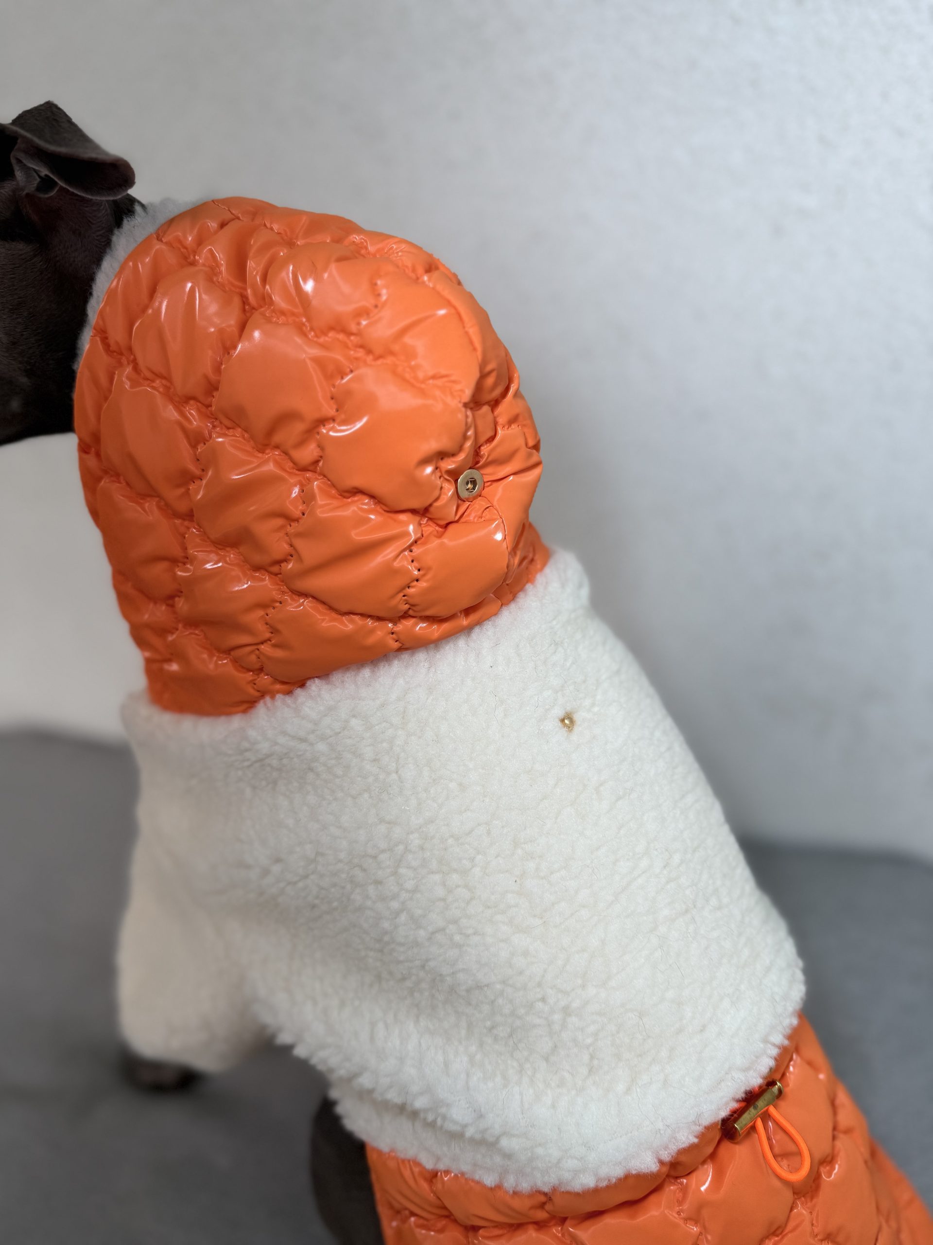 Dzięki regulacji na brzuchu i plecach, kurtkę można idealnie dopasować do sylwetki pupila, zapewniając pełną swobodę ruchów. Kaptur zapinany na zatrzask dodatkowo chroni głowę psa i nadaje kurtce elegancki charakter.