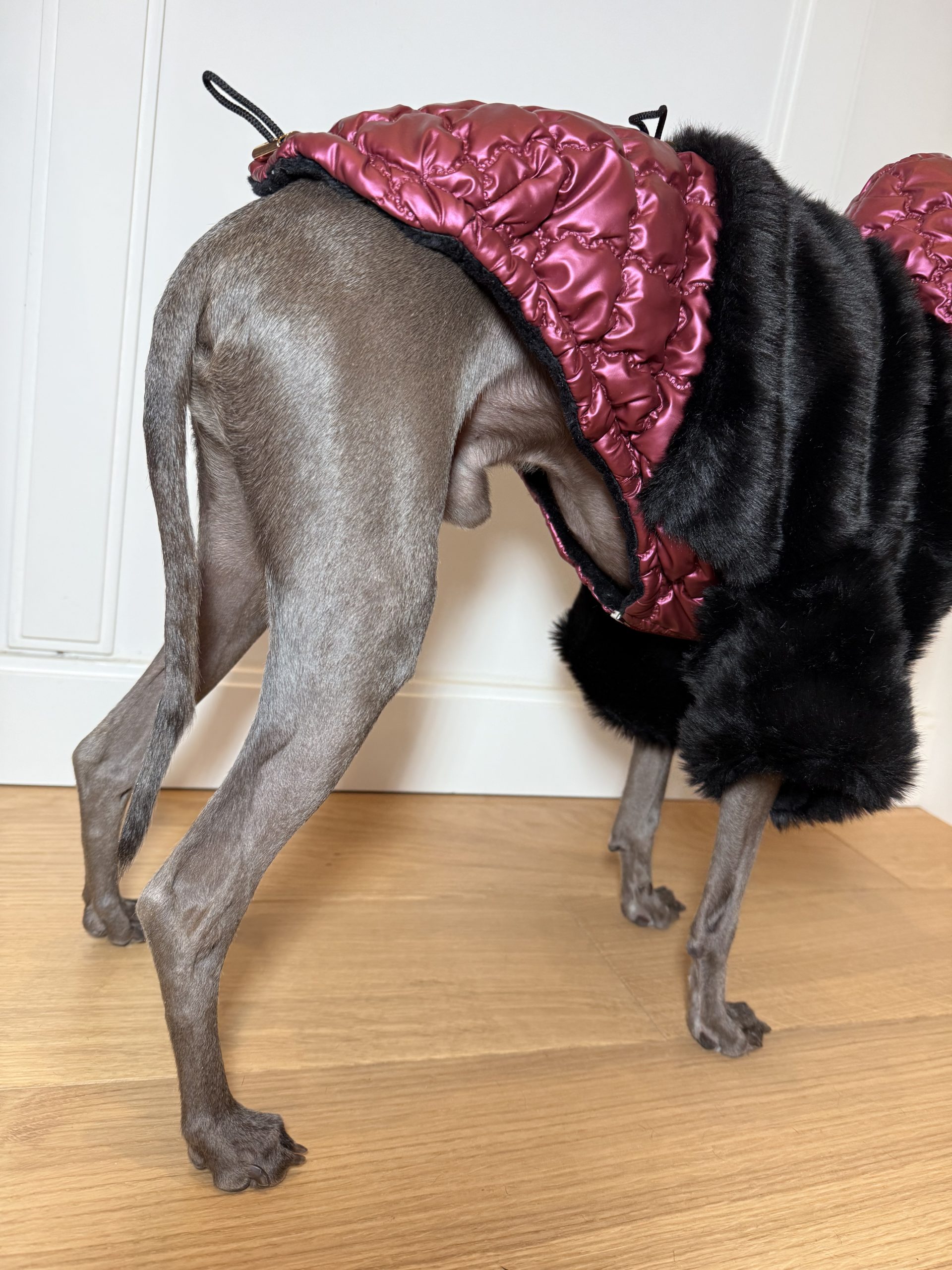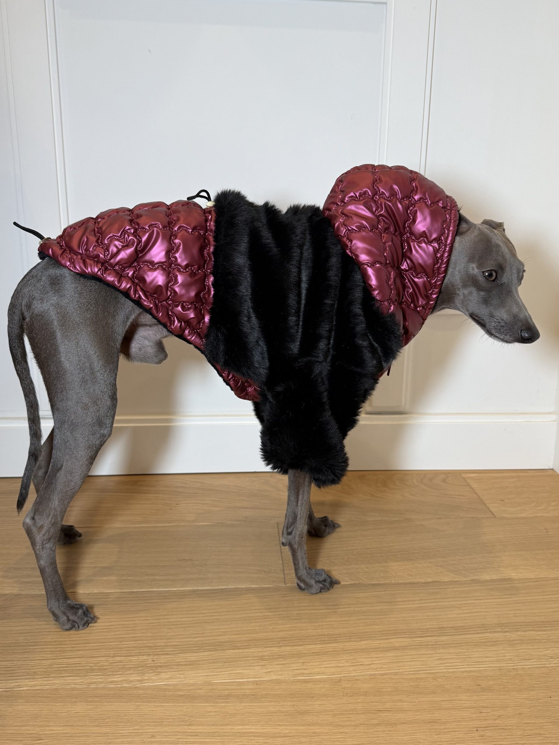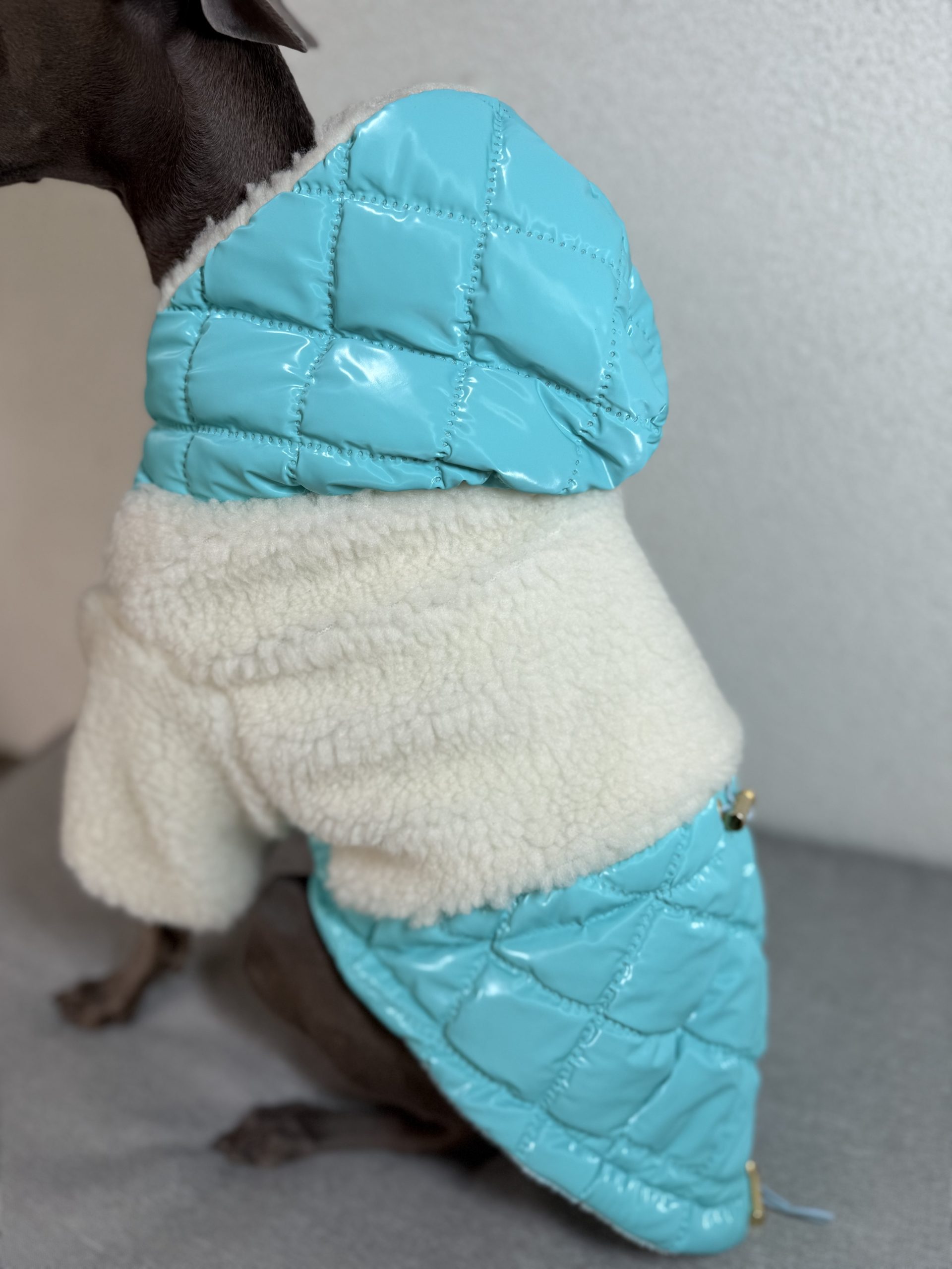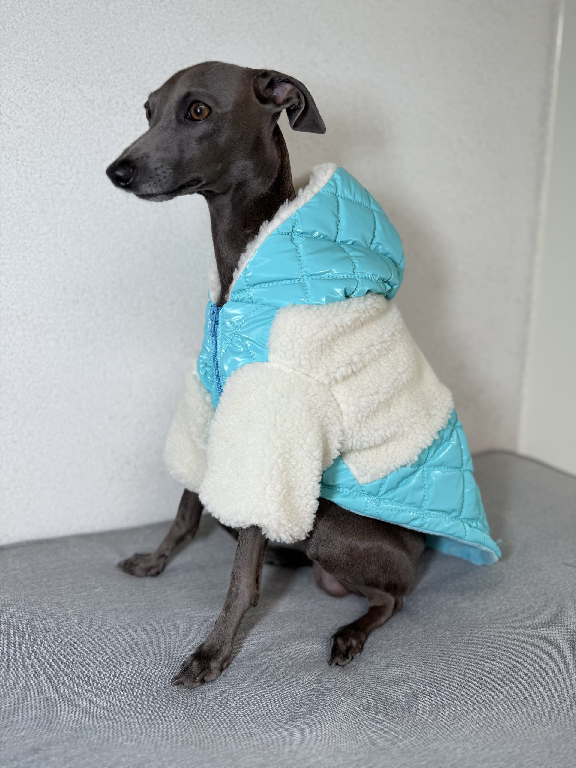 Dzięki regulacji na brzuchu i plecach, kurtkę można idealnie dopasować do sylwetki pupila, zapewniając pełną swobodę ruchów. Kaptur zapinany na zatrzask dodatkowo chroni głowę psa i nadaje kurtce elegancki charakter.