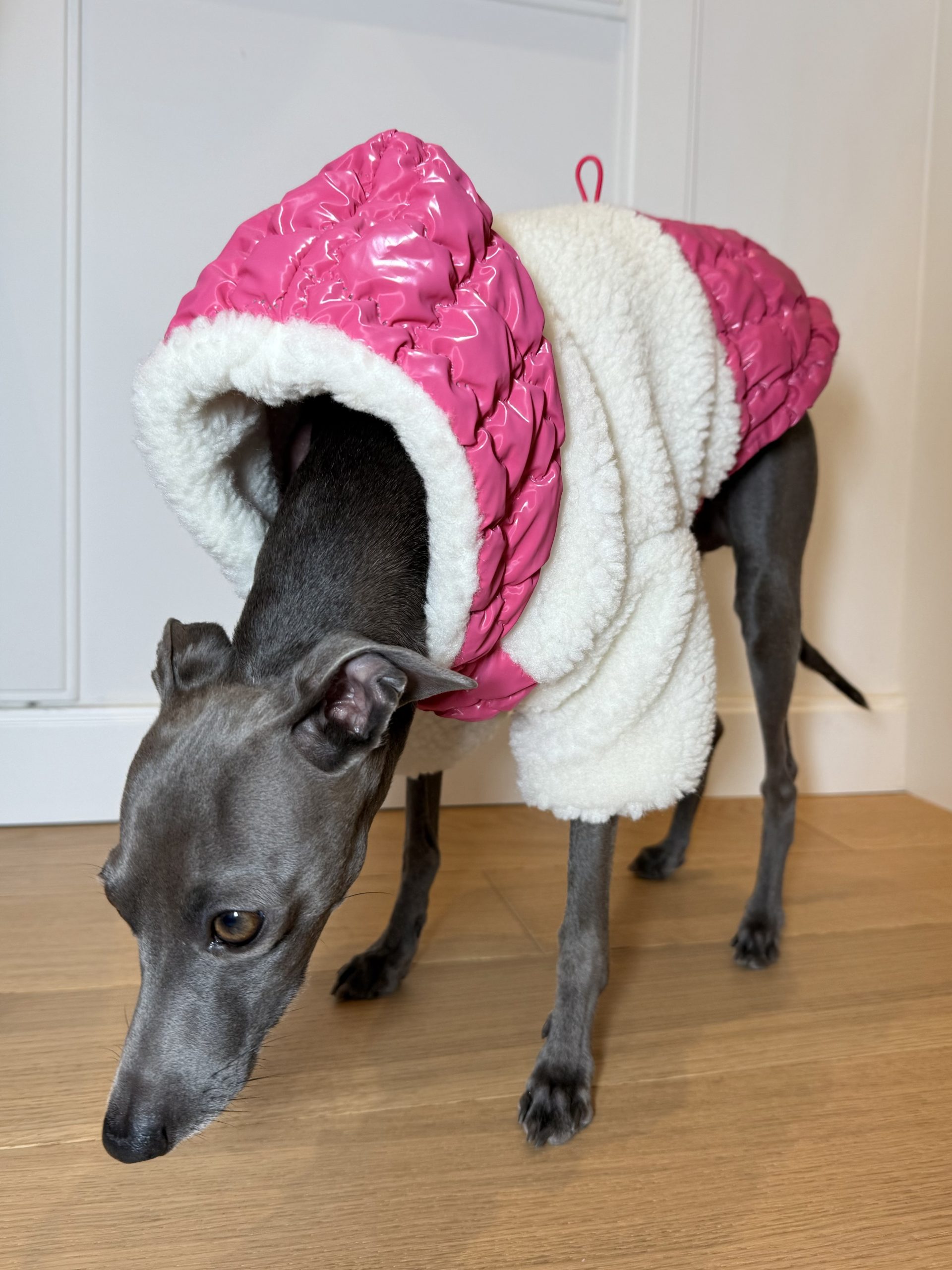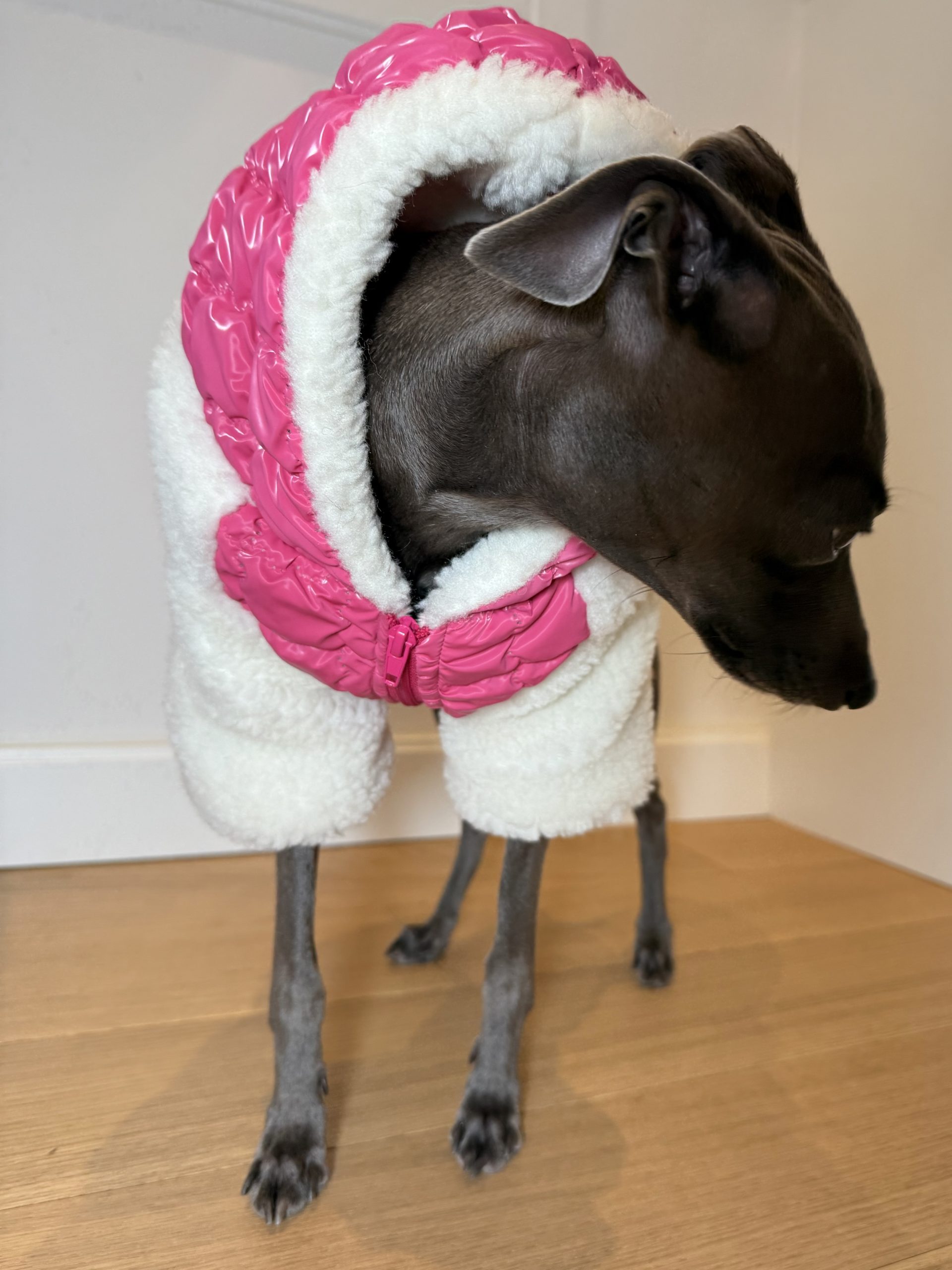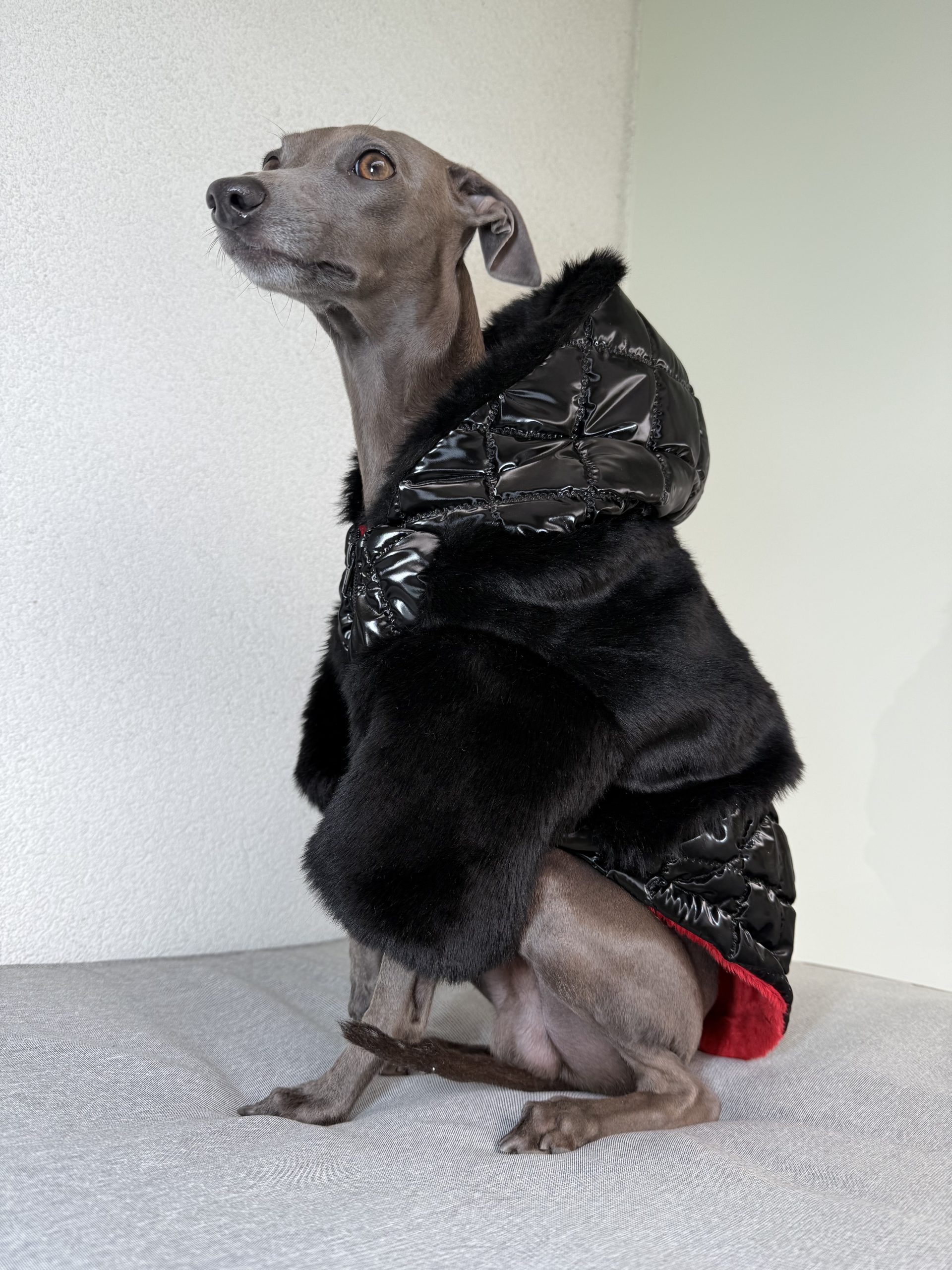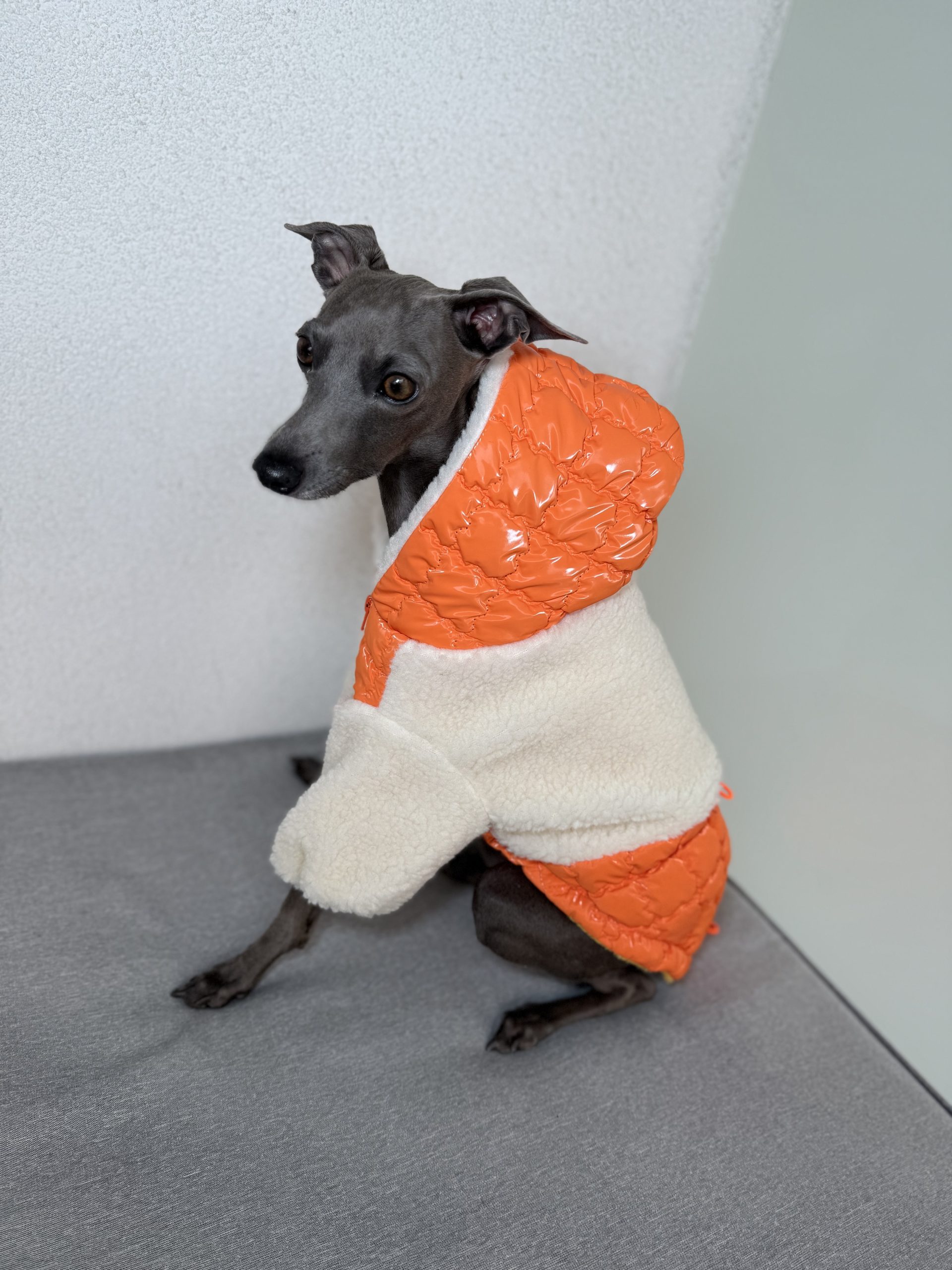 Dzięki regulacji na brzuchu i plecach, kurtkę można idealnie dopasować do sylwetki pupila, zapewniając pełną swobodę ruchów. Kaptur zapinany na zatrzask dodatkowo chroni głowę psa i nadaje kurtce elegancki charakter.
