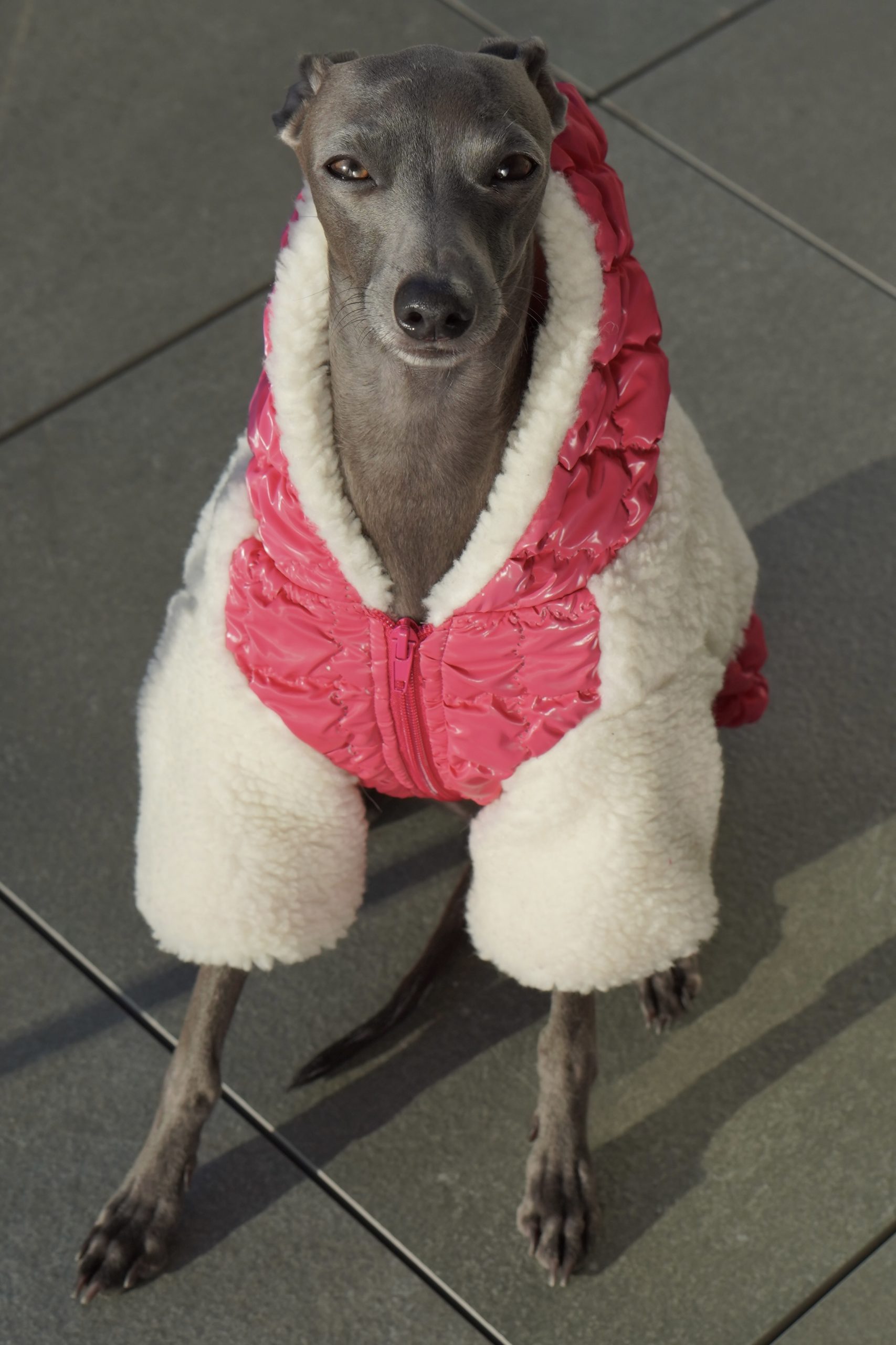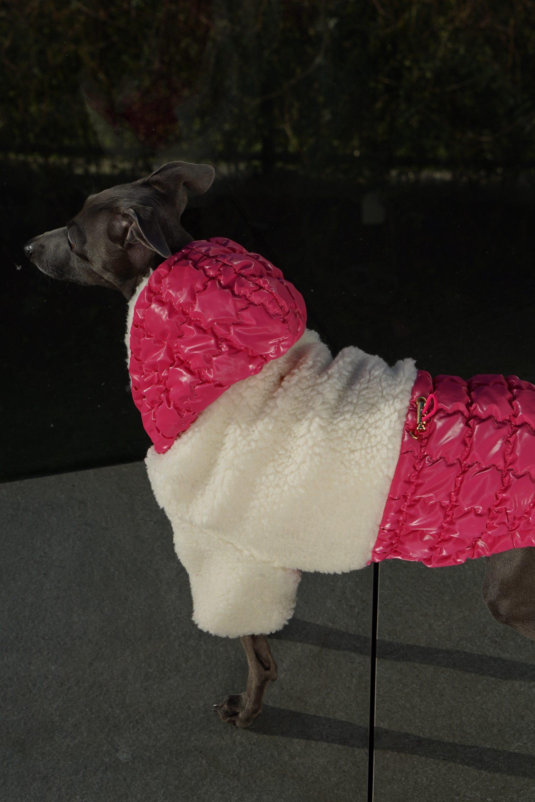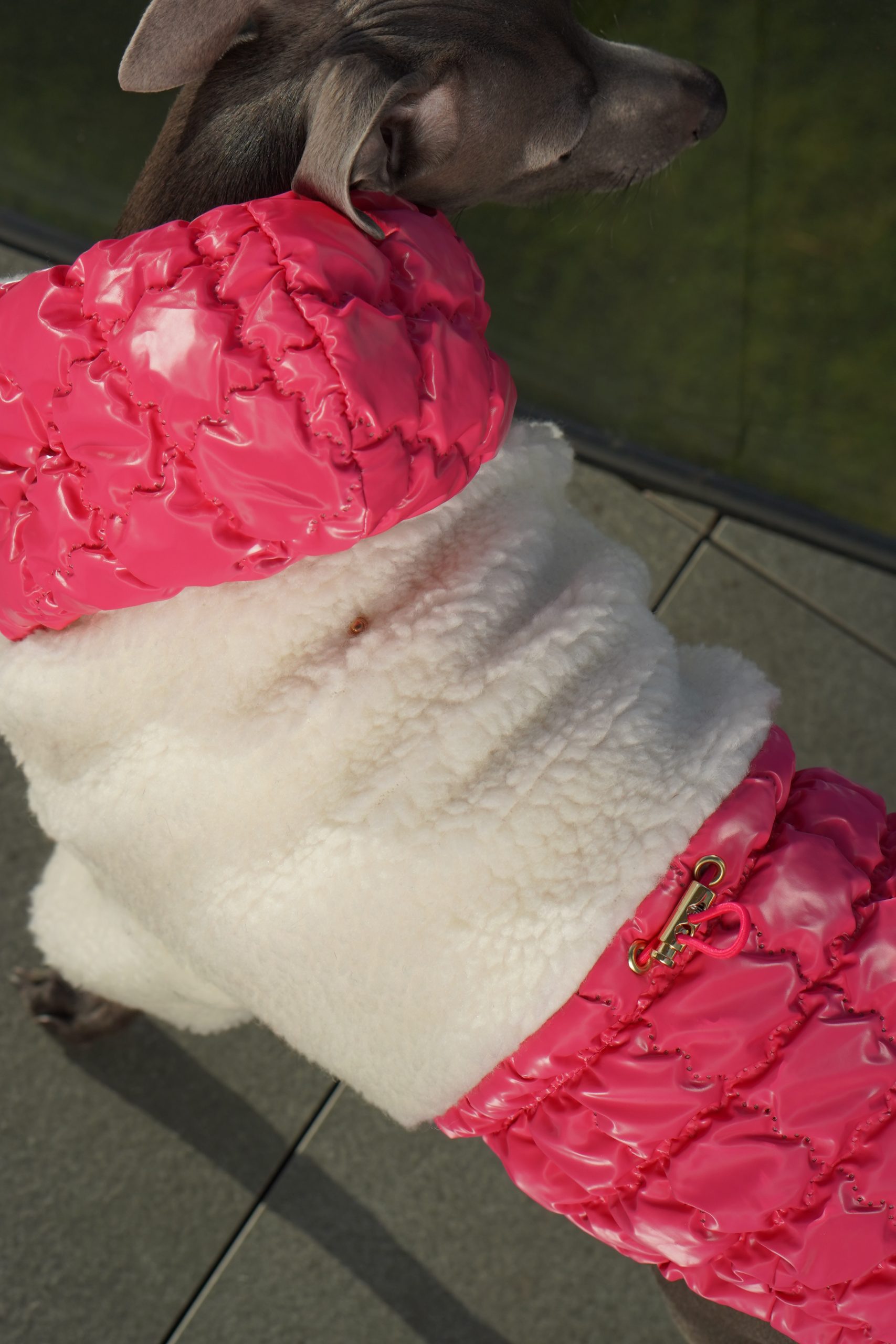 Dzięki regulacji na brzuchu i plecach, kurtkę można idealnie dopasować do sylwetki pupila, zapewniając pełną swobodę ruchów. Kaptur zapinany na zatrzask dodatkowo chroni głowę psa i nadaje kurtce elegancki charakter.