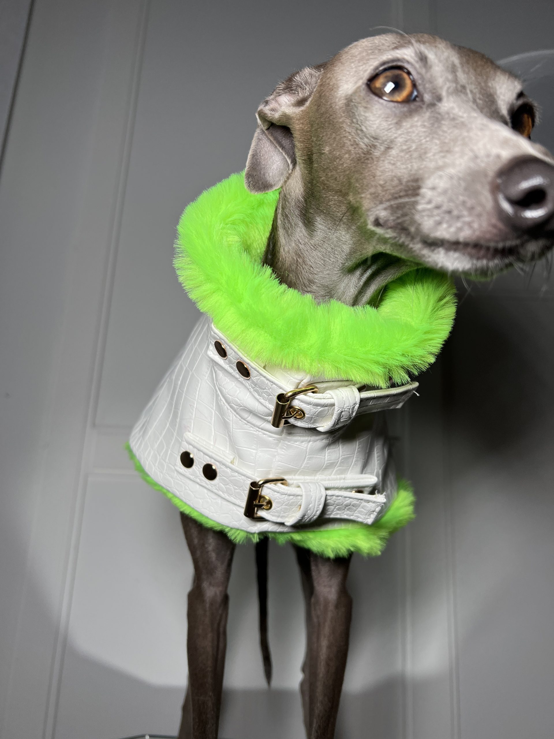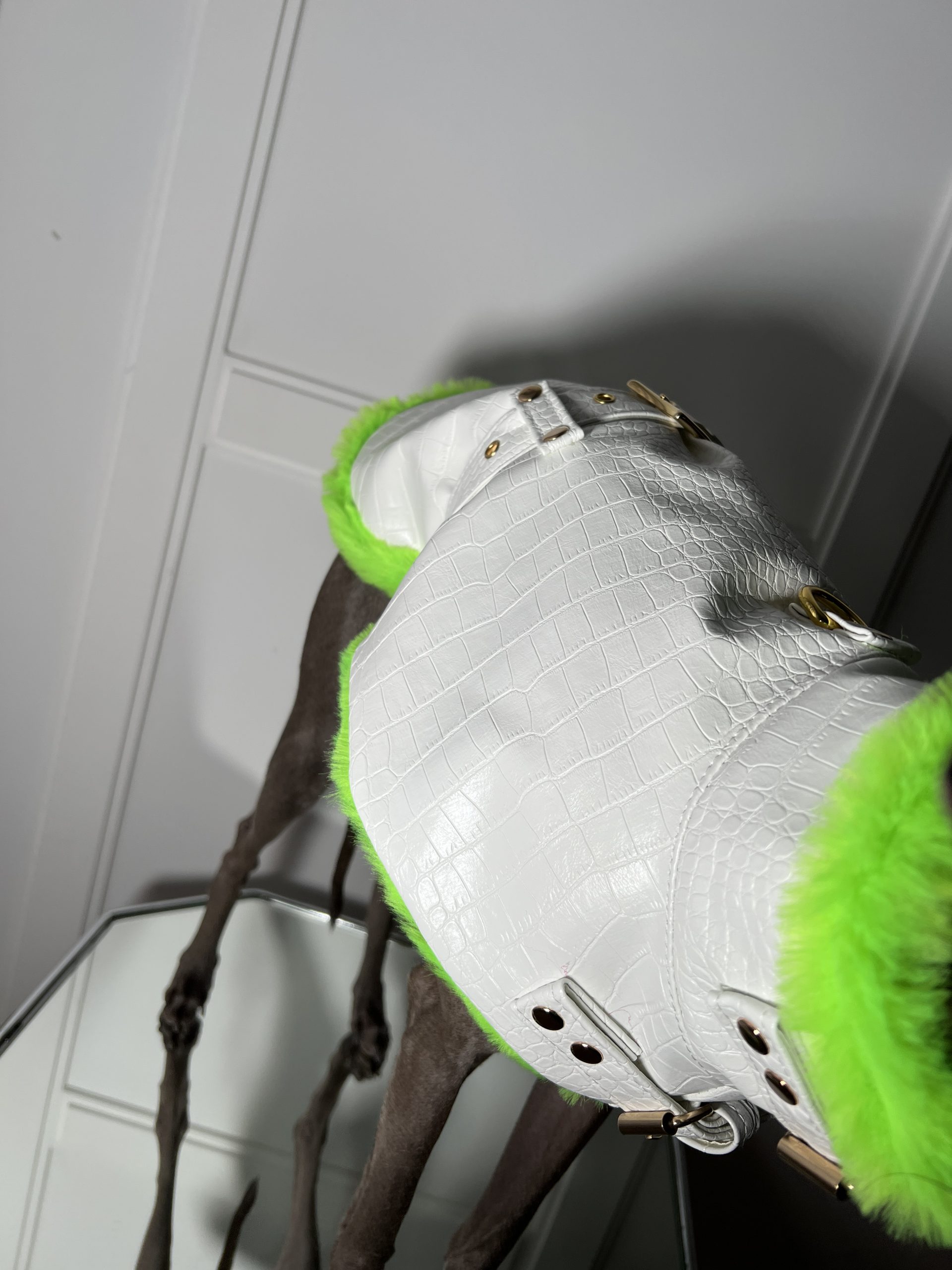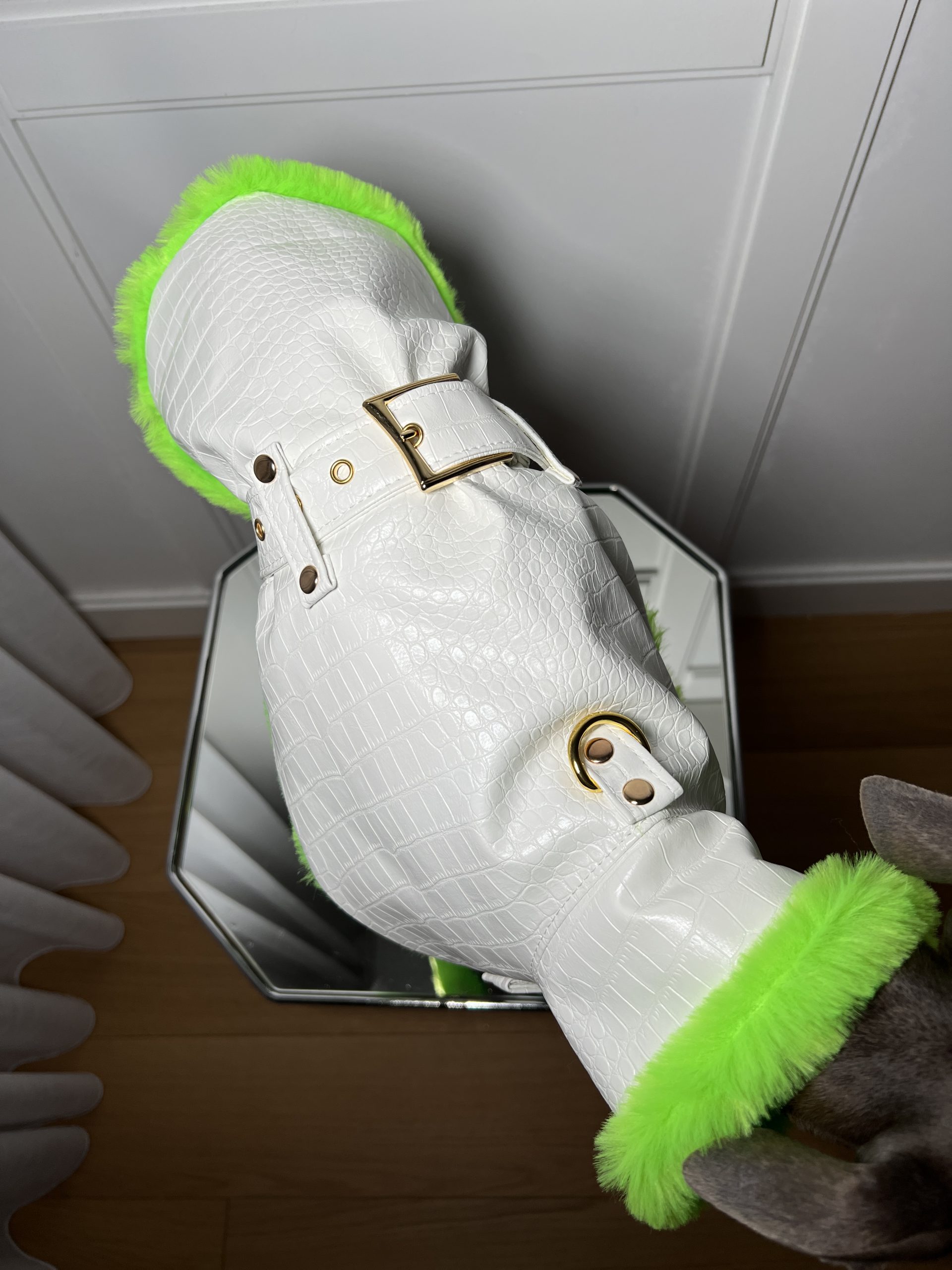 Przedstawiamy nasz ekskluzywny płaszcz dla psa, który łączy elegancję z funkcjonalnością. Szyty na wymiar, wykonany z tłoczonej eko skóry we wzór krokodyla oraz jest ocieplany miękkim futrzanym materiałem, ten płaszcz wyróżnia się nie tylko stylem, ale i praktycznymi detalami.