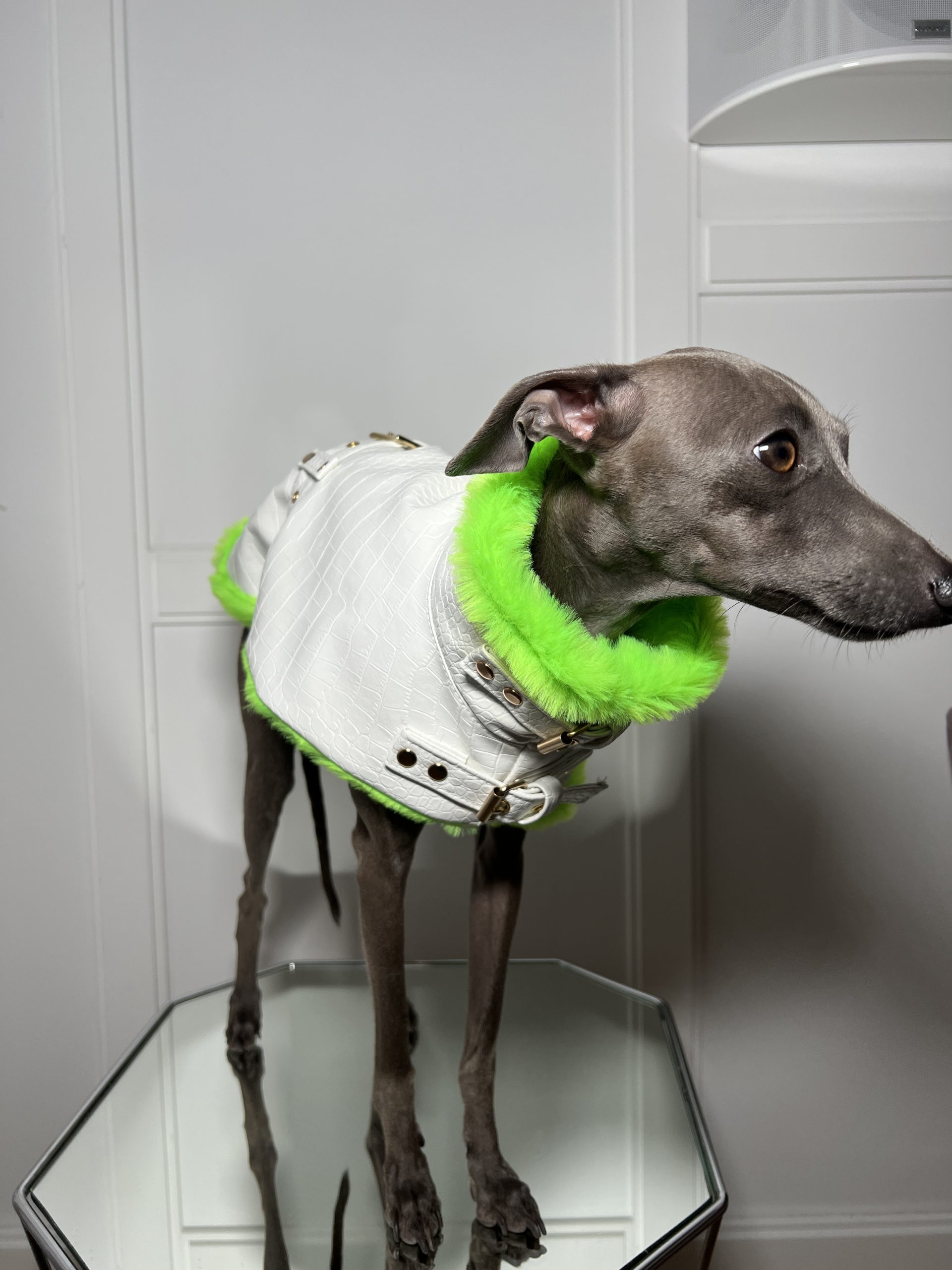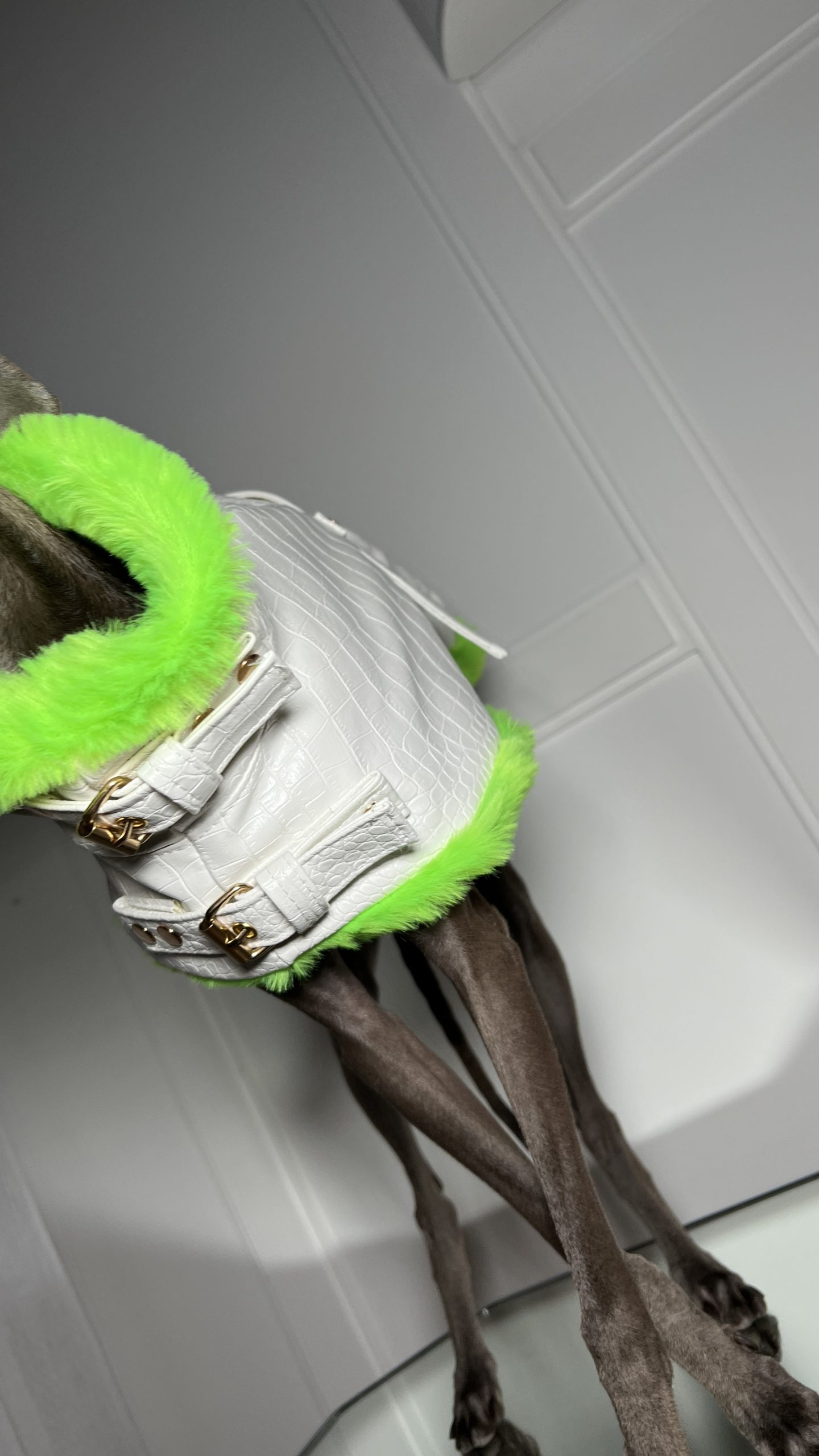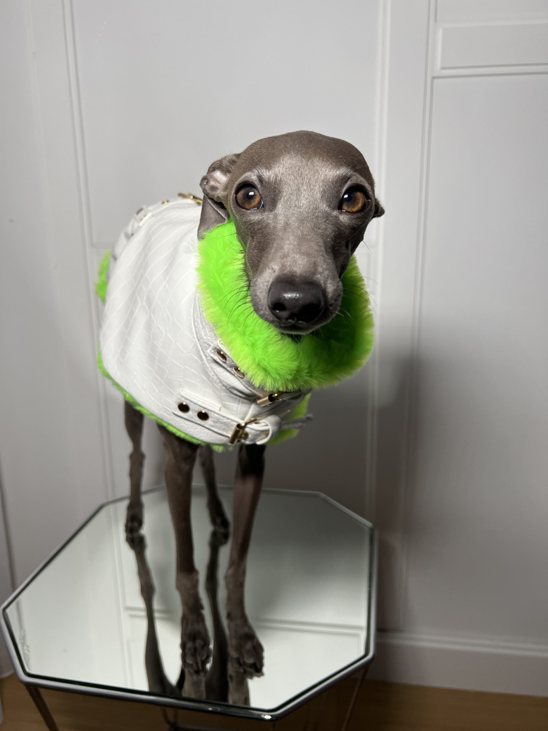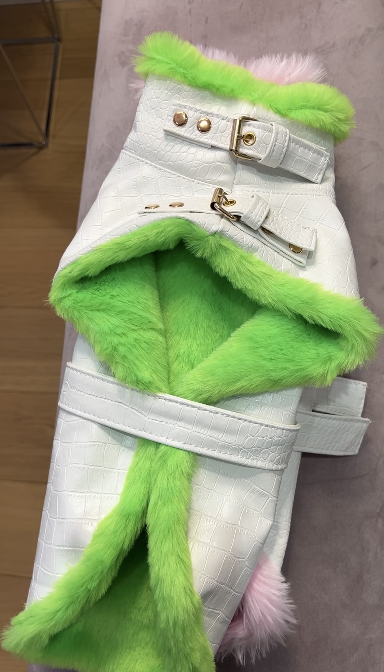 Przedstawiamy nasz ekskluzywny płaszcz dla psa, który łączy elegancję z funkcjonalnością. Szyty na wymiar, wykonany z tłoczonej eko skóry we wzór krokodyla oraz jest ocieplany miękkim futrzanym materiałem, ten płaszcz wyróżnia się nie tylko stylem, ale i praktycznymi detalami.