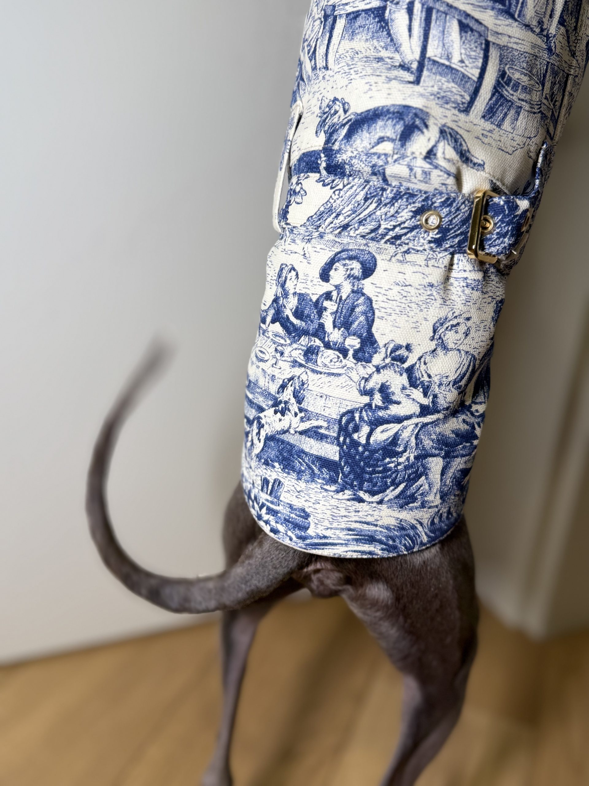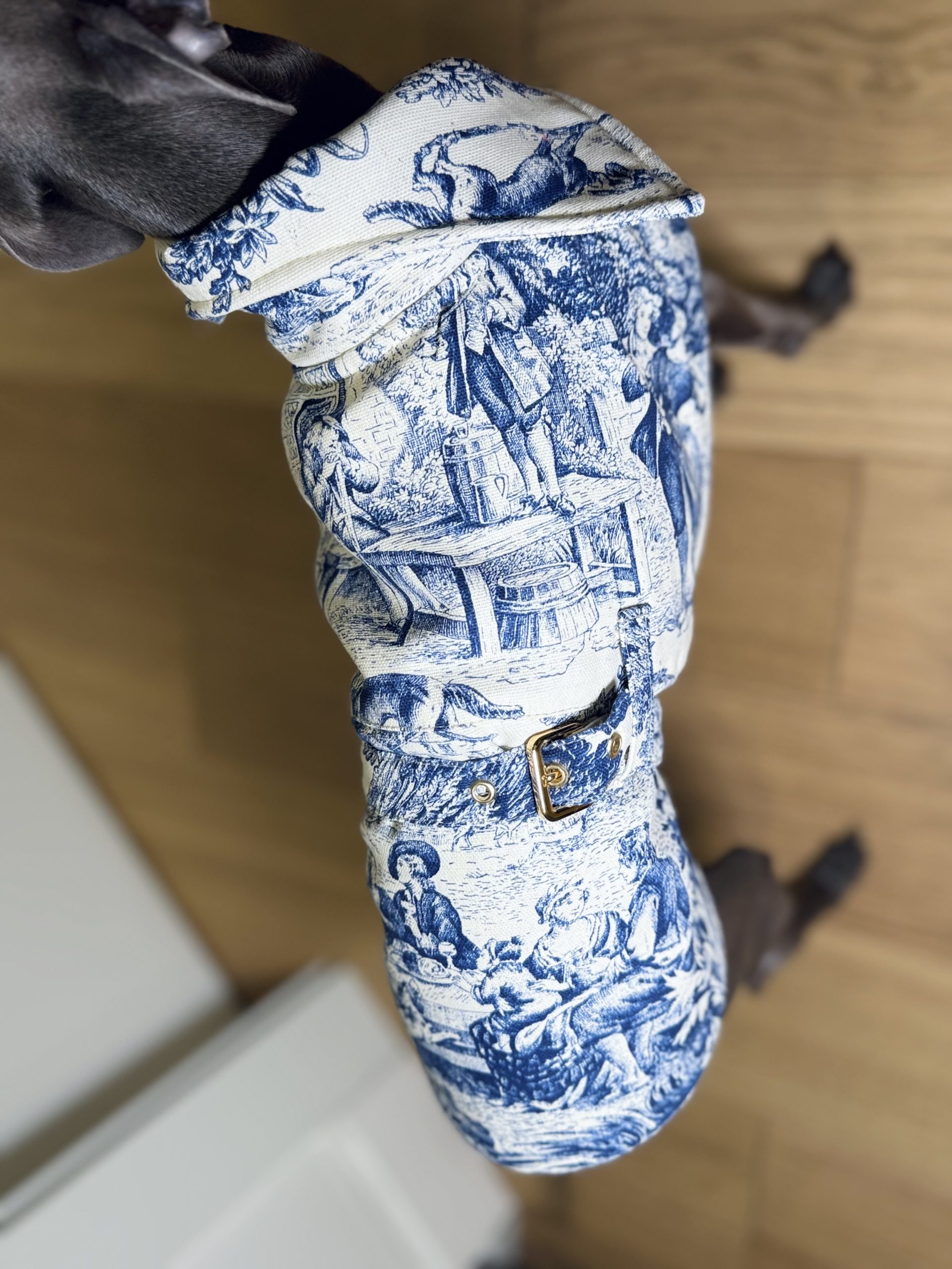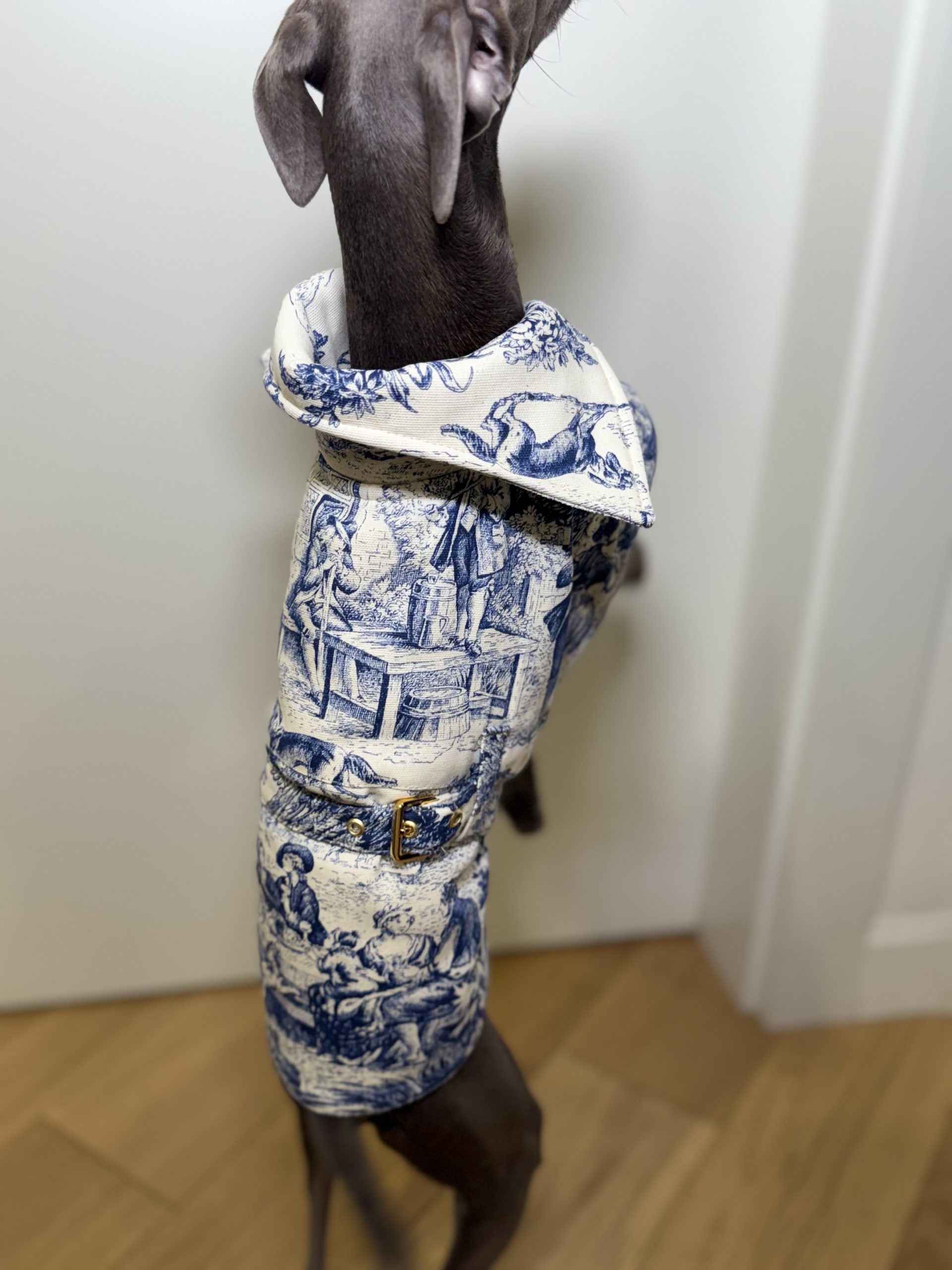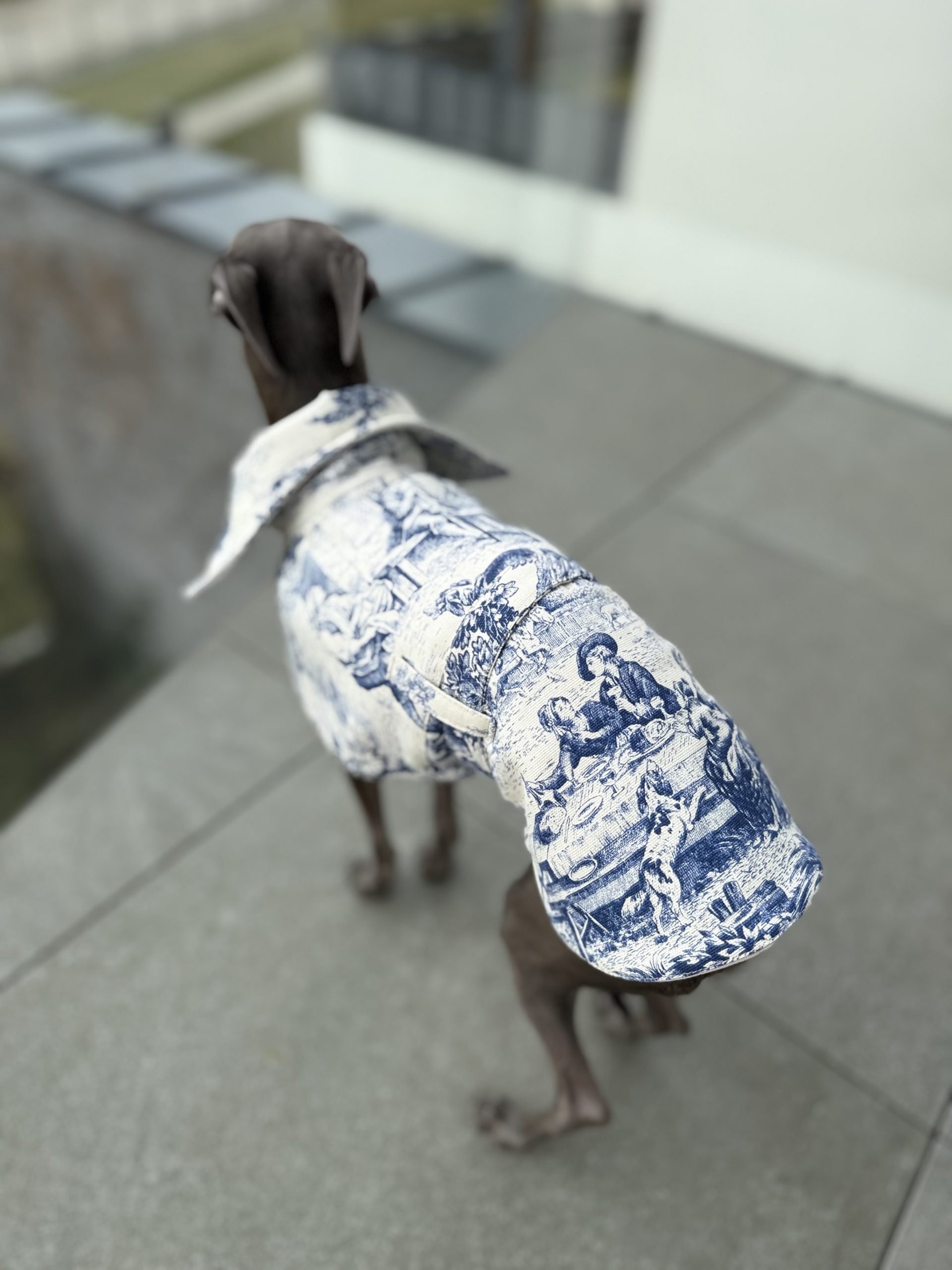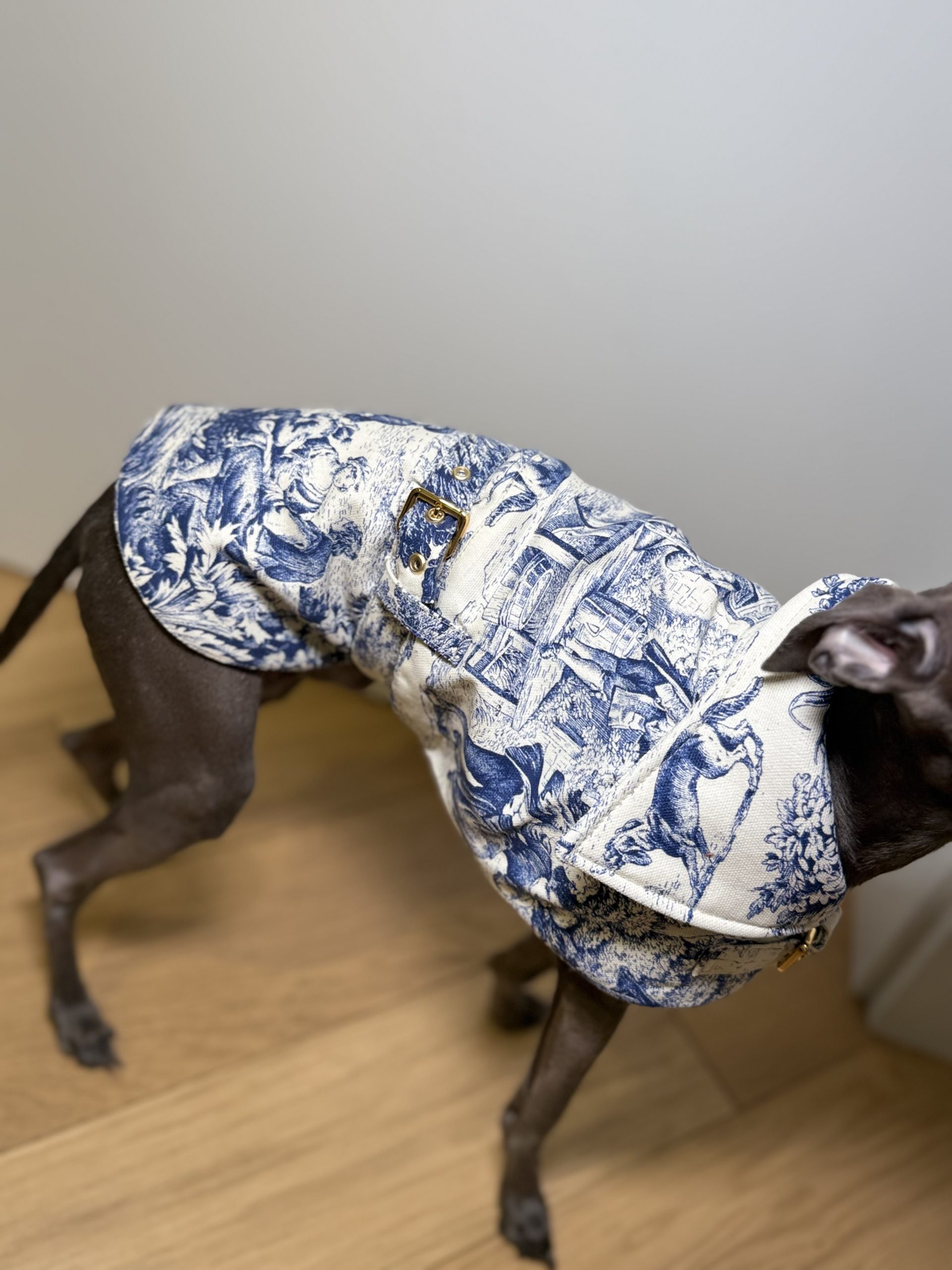 Przedstawiamy nasz płaszcz dla psa, który łączy elegancję z funkcjonalnością. Szyty na wymiar, wykonany z bawełny w malowniczy wzór.