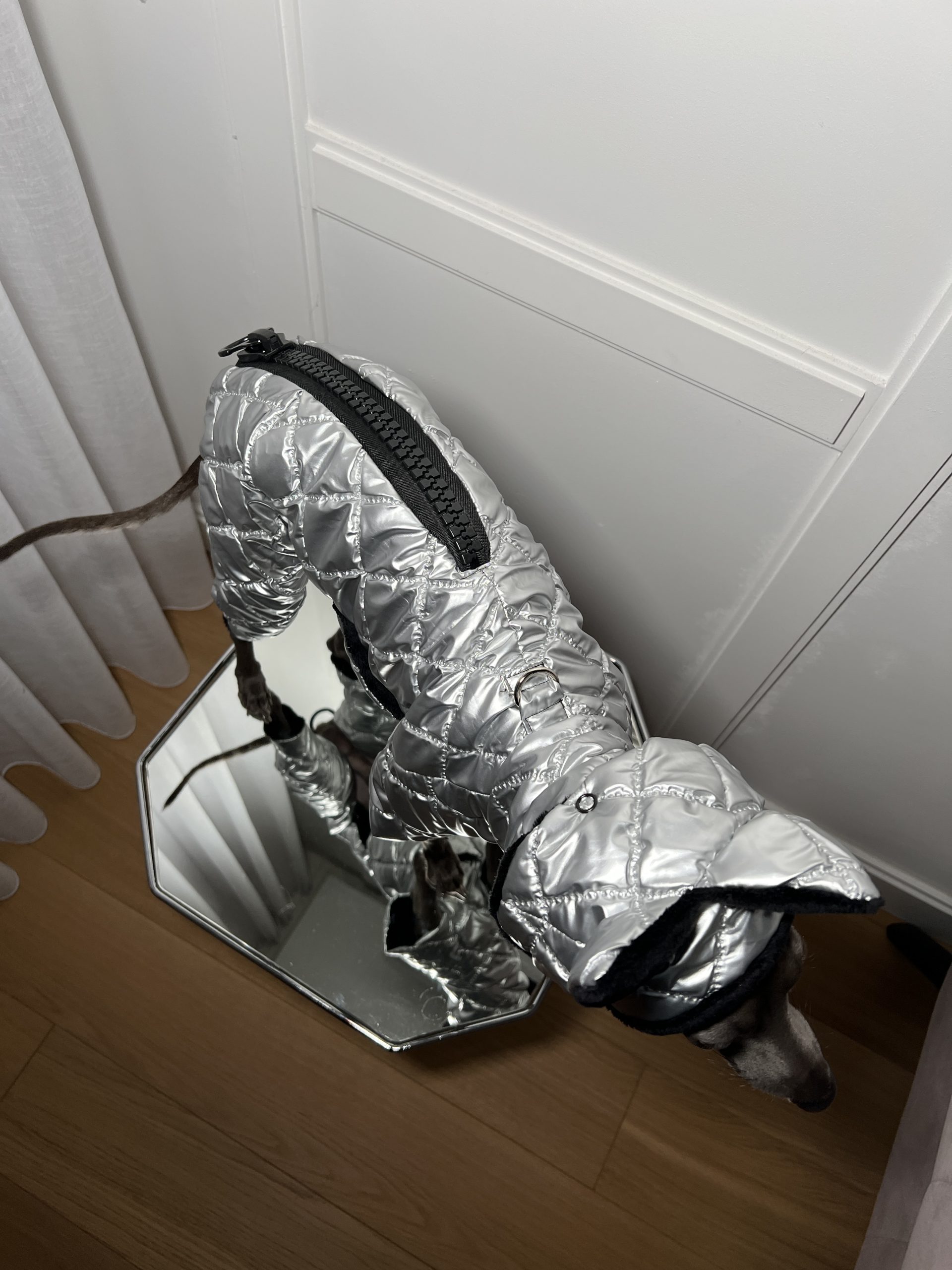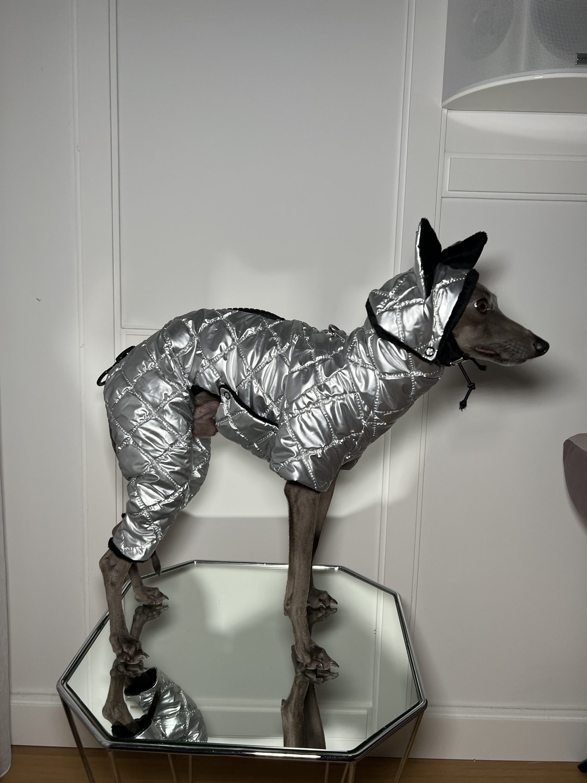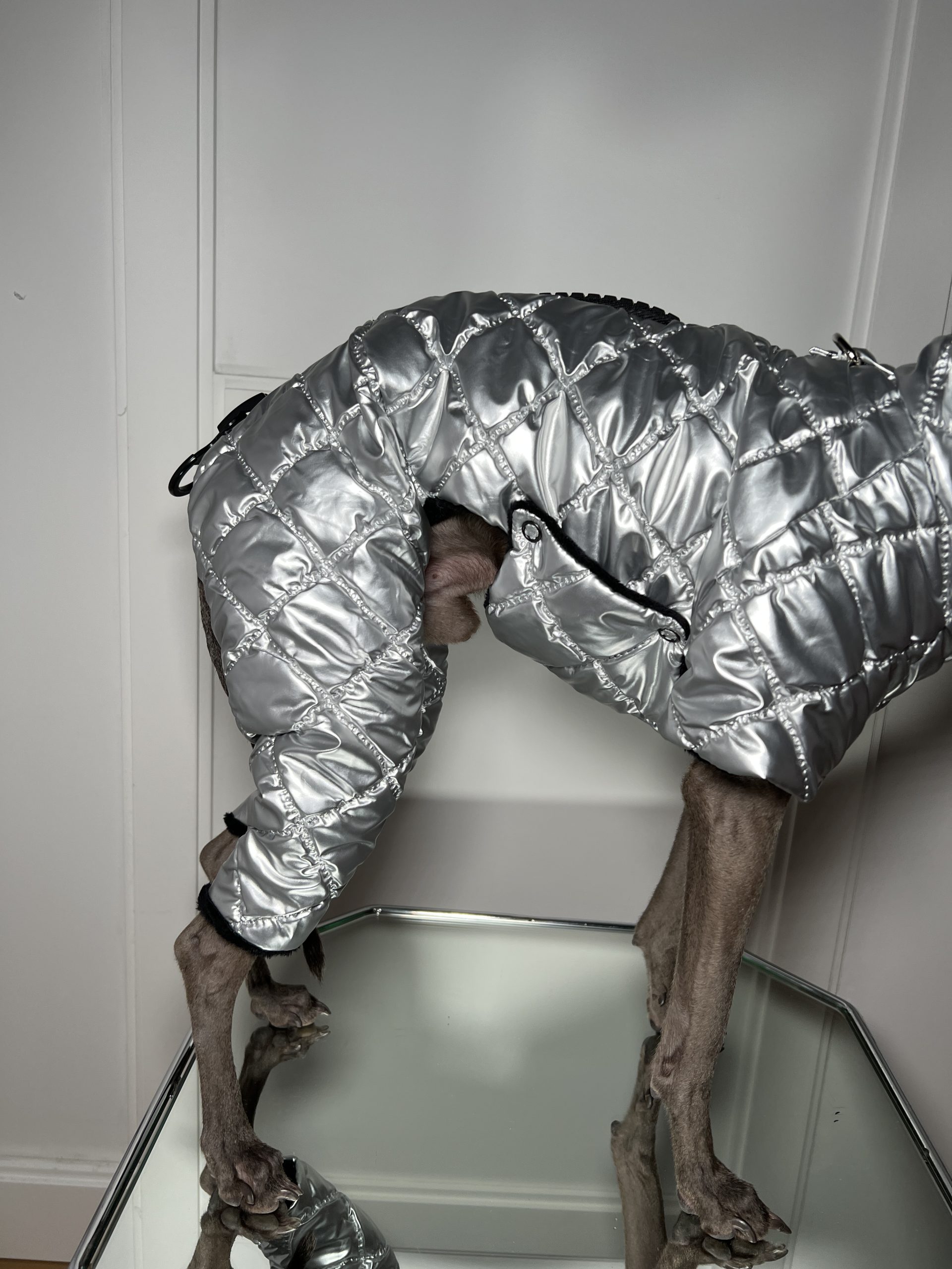 Nasz wyjątkowy zimowy kombinezon dla psa, który łączy funkcjonalność z luksusem, zapewniając ciepło i komfort nawet w najzimniejsze dni. Szyty na miarę, idealnie dopasowuje się do ciała psa, oferując maksymalną ochronę przed zimnem i wiatrem.